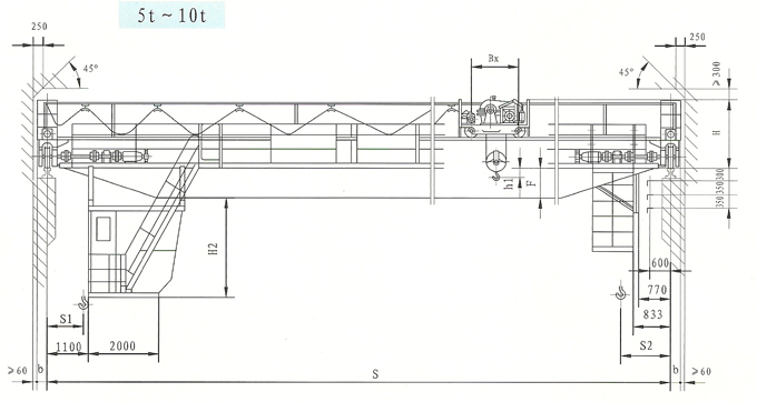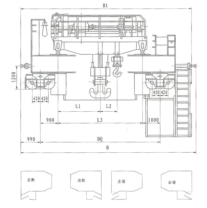 三、操縱室與走臺設(shè)有斜梯,方便操作及維修。增設(shè)了起重機(jī)供電維修平臺。