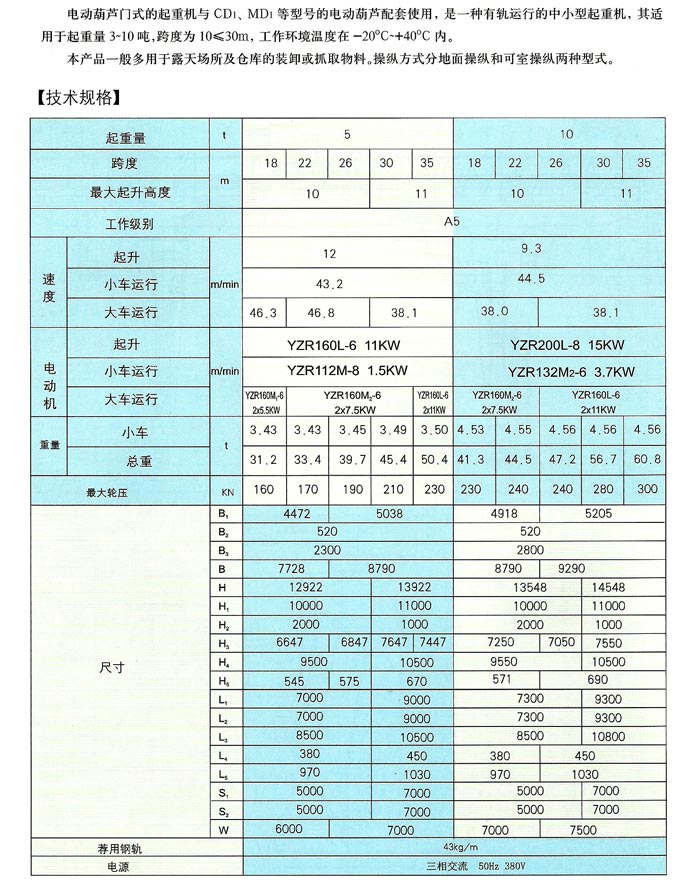 本起重機(jī)屬A5(中級(jí))工作級(jí)別,并帶有防雨罩可供選用。